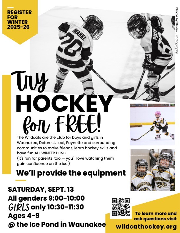 Join the Wildcat Youth Hockey Association on Saturday, Sept. 13, to have your child try hockey for free.